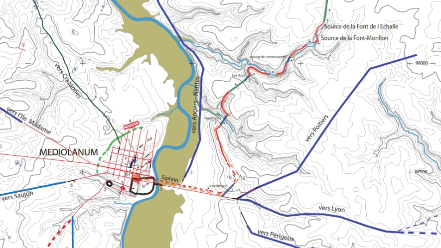 se déplaçant depuis la source la plus éloignée, jusqu’aux Thermes Romains de ville Saintes.