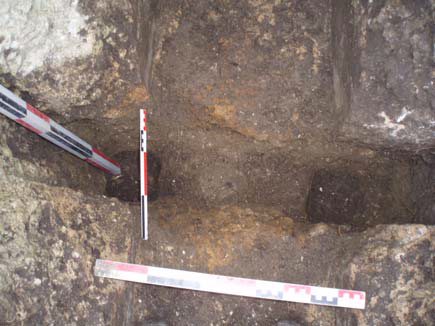 Le bassin initial est en partie comblé, en laissant un passage central en deux parties désaxées (Cliché 10) qui pourrait correspondre à une fermeture du conduit par des planches.