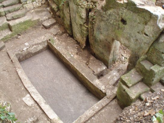 La piscine baptismale a été recalibrée au XIXème siècle pour aménager le bassin du lavoir.