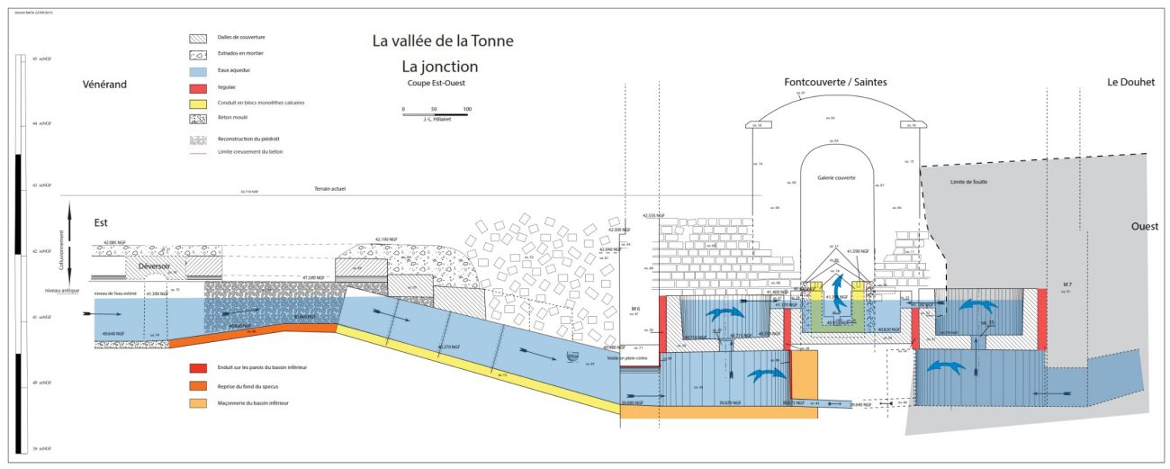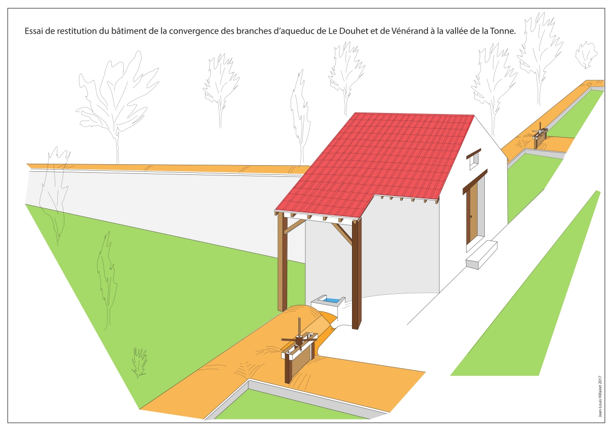 Les banches des aqueducs du Douhet et de Vénérand se rejoignent dans la vallée de la Tonne dans un bâtiment de conception complexe constitué d'un ensemble de bassins cubique, circulaire et ovoïde, collectant l'eau de Vénérand d'un côté et du Douhet de l'autre. Le rétrécissement des conduits à l'arrivée des branches de Vénérand et Le Douhet créé un effet d'accélération de l'eau (effet Venturi).