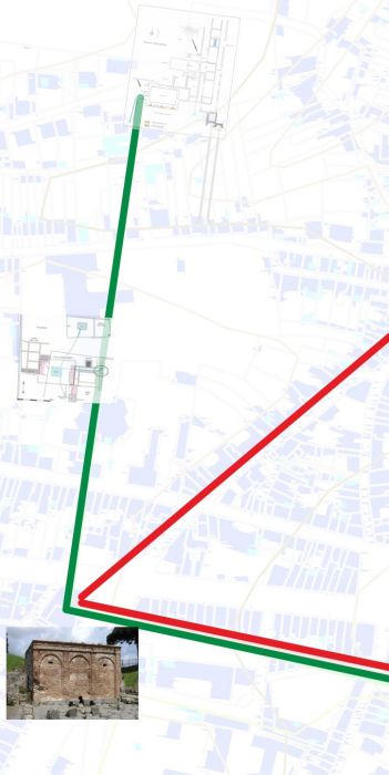 Plan des fouilles de l'école Emile Combes avec l'hypothèse de l'aqueduc en limite de propriété