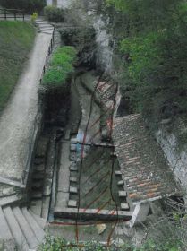 Enfin, entre le lavoir et le bassin de la source, il existe une masse rocheuse de 1.50 m de large qui s’avère être ce qui reste du toit de la galerie de la rivière souterraine.