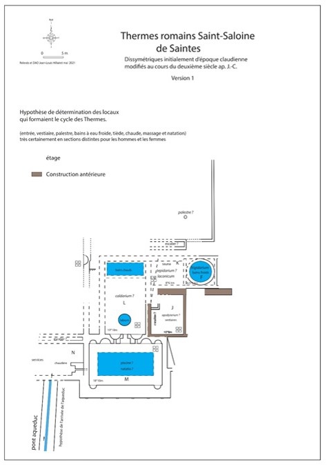 Plan de l’étage, version 1, des thermes Saint-Saloine. Relevés et DAO Jean-Louis Hillairet