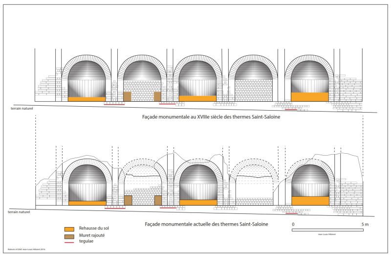 Restitution hypothétique, version 2, des thermes de ″Saint-Saloine″. DAO Jean-Louis Hillairet