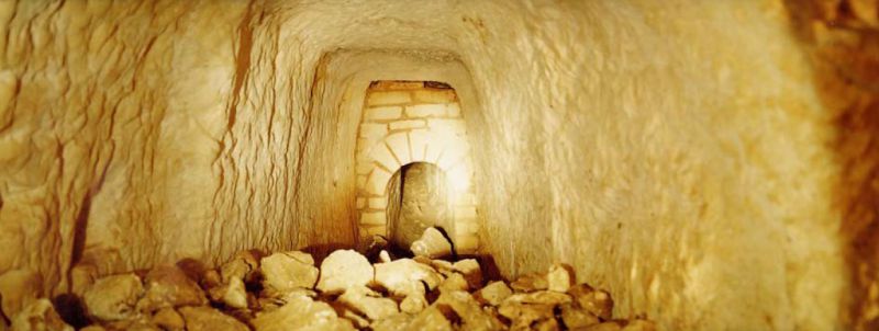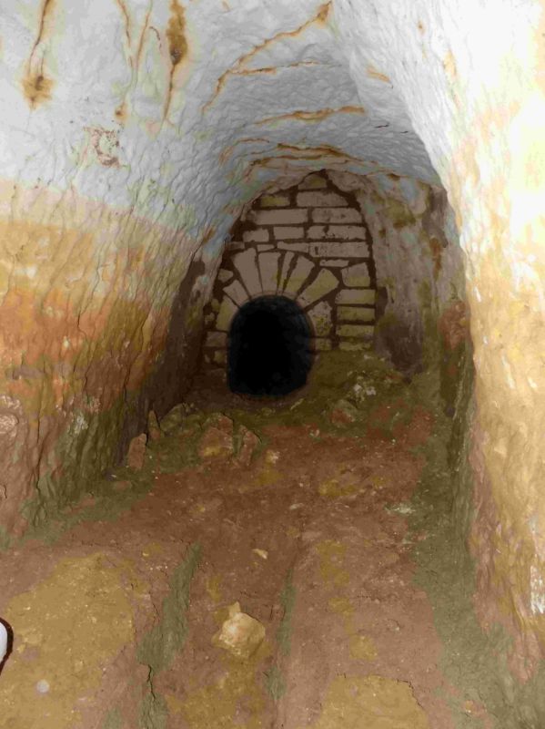 Entre ces deux parties se trouve un espace vide d’un mètre, qui permet l’accès à la galerie, à l’extrémité de laquelle on note divers creusements dans les parois calcaires, permettant de mettre un système de fermeture ayant servi au Moyen Age, comme souterrain refuge.